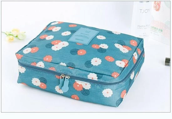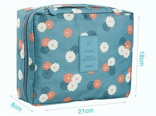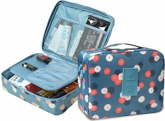 Deze travel toilet bag beschikt over een stevige ritssluiting, diverse opbergvakjes en een handige draaghendel.