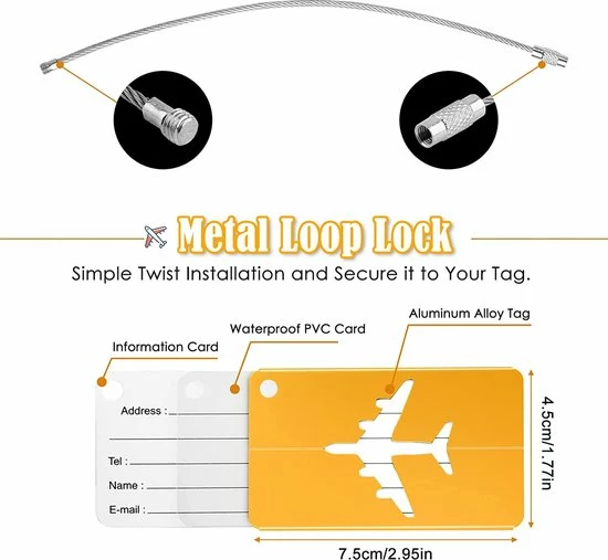 Pakket hoeveelheid: er zijn 5 stuks van metalen reizen bagagelabels met roestvrij staaldraad touw en informatie-kaarten, de kleur is voor u om te kiezen; De tas tags meten ongeveer 2,95 x 1,8 inch / 7,5 x 4,6 cm, dat is klein en charmant, slechts een hand kan houden, gemakkelijk mee te nemen, opknoping in de koffer neemt geen ruimte in beslag