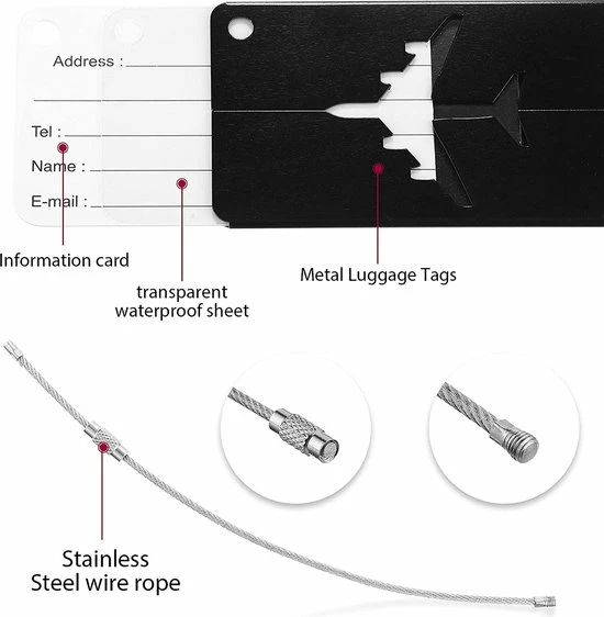 Kwaliteit materiaal: deze metalen reizen bagagelabels zijn gemaakt van hardheid aluminiumlegering materiaal dat niet gemakkelijk te vervormen en stevig gebruik; Een keer stempelen gieten, oppervlakte oxidatie behandeling, kleur helder te houden, kan ervoor zorgen dat de kleur niet vervaagt na een lange tijd van gebruik, en overeenkomen met 304 roestvrij staal staalkabel, kan draaien open, niet gemakkelijk te vervagen en breken, erg handig om nauw aansluiten van uw bagage