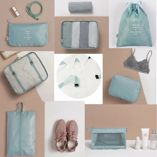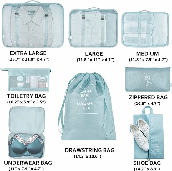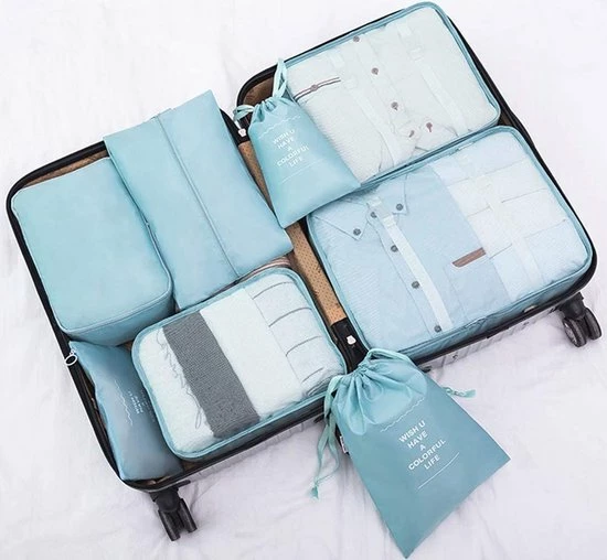 In de verpakking: 8 packing cubes+1 Aluminium bagagelabel