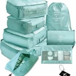 BOTC Packing Cubes Set 9-Delig: Inclusief 9 PCS Reis Bagage Organizers: Inclusief 3 verschillende maten van de verpakking kubussen organisatoren (groot: 10-12 overhemden, medium: 7-9 overhemden, klein: 5-6 overhemden), 1 beha ondergoed zak, 1 toilettas, 1 wasserij zak, 1 schoenen zak, Bagagelabel en 1 zak met rits. Gemakkelijk in te pakken uw alle bagage goed in uw 21-25 centimeter koffer, handbagage, lades en rugzak, geweldig voor korte of lange reis
