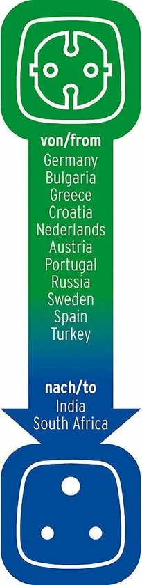 Deze Brennenstuhl Stekker Verloopstekker NL-Z.Afrik 16 amp. 250V, geaard 1508460 van het merk Brennenstuhl met origineelnummer: 1508460 wordt verpakt in 1 Blister a 1 Stuk.