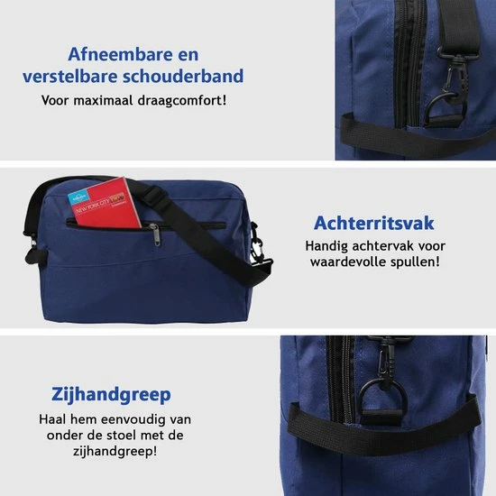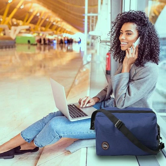 Binnenin vind je genoeg ruimte voor bijvoorbeeld je telefoon en andere belangrijke kleinere spullen. Dit alles kan je middels de verstelbare schouderband bij je dragen. Het kan onder de stoel voor U worden geplaatst, wat betekent dat u niet langer hoeft te wachten totdat het teken van de veiligheidsgordel afgaat voordat u uw spullen neemt.