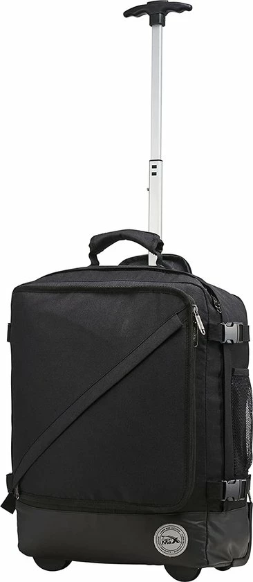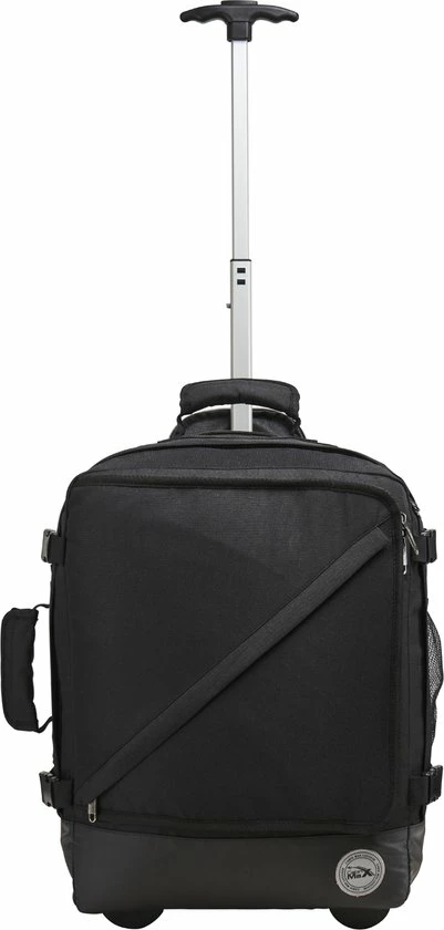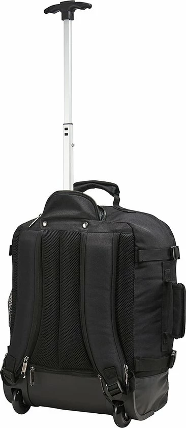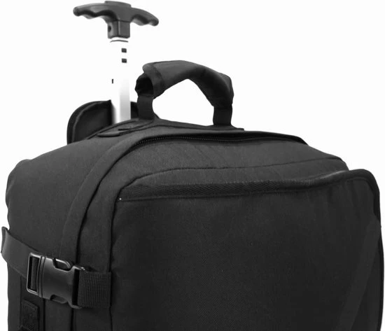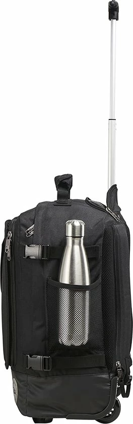 De trolley is niet alleen ideaal qua afmetingen, maar is ook nog eens heel makkelijk mee te nemen. De trolley is voorzien van wieltjes en een inklapbare aluminium handgreep. Je hoeft je bagage dus niet continu te tillen, maar kunt deze soepel achter je aan trekken.