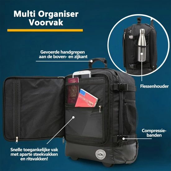 โก๏ธ De regels voor het meenemen van handbagage worden steeds strenger. Bij sommige vliegmaatschappijen is het tegenwoordig alleen nog maar mogelijk om gratis handbagage mee te nemen, wanneer dit onder de stoel voor je kan worden geplaatst. Deze superhandige trolley is precies in de juiste afmetingen gemaakt, om als โonder de stoelโ handbagage te worden meegenomen in het vliegtuig.