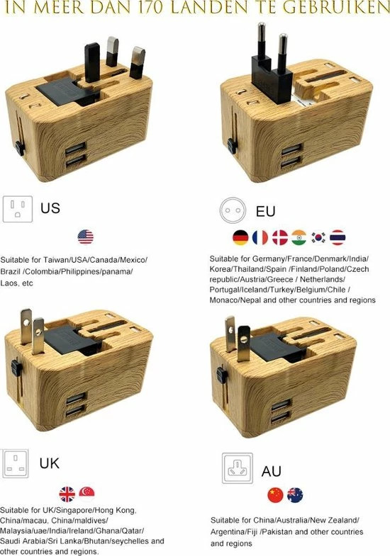 Op reis, zakelijk of privΓ©? Omdat je gebruik wilt blijven maken van al je elektronica zoals je smartphone, tablet, camera maar ook laptop is een reisadapter (wereldstekker) een onmisbaar item in je koffer. Deze reisadapter van Dutch Quality kan in 170 landen worden gebruikt en maar liefst 3 apparaten kunnen tegelijkertijd worden opgeladen.