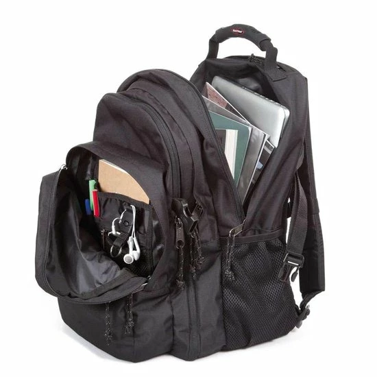 Multitasking wordt heel makkelijk met dit grote rugzak-formaat. Twee ruime compartimenten zijn voorzien van een aparte laptopsleeve, en een makkelijk bereikbaar voorvak en een organizer bieden nog meer opbergmogelijkheden. Met afneembare sleutelhanger en gevoerde onderkant: dit is de grootste rugzak die je kunt vinden.