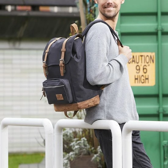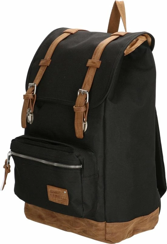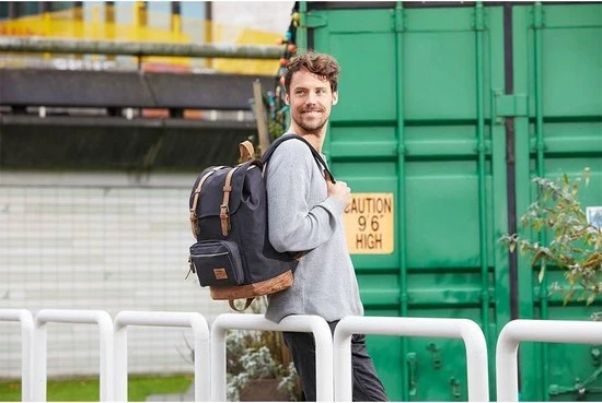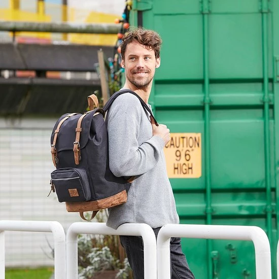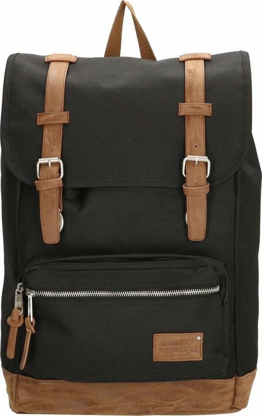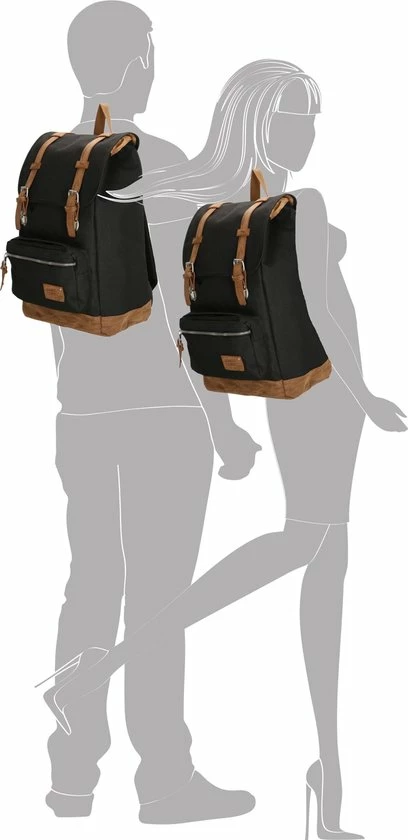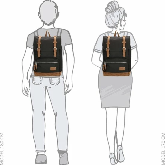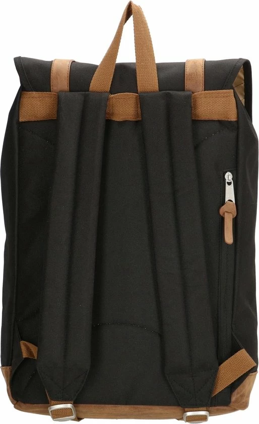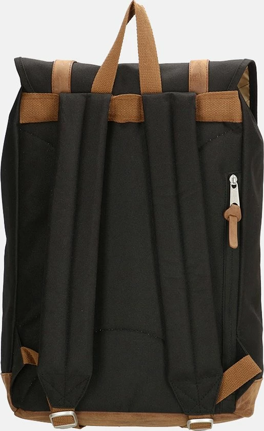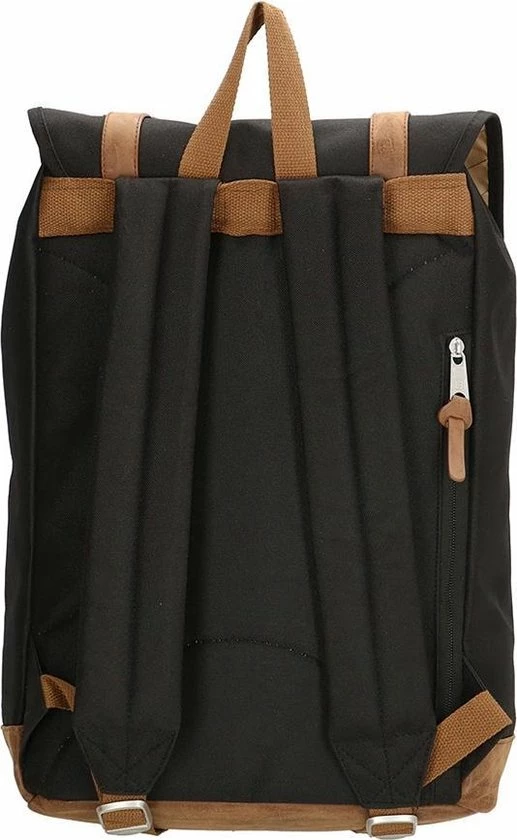 Deze stoere rugtas uit de Santiago serie van Enrico Benetti heeft een echte outdoor look. Deze serie kenmerkt zich door het stevige polyester in basic kleuren, bloemen of camouflage print, gecombineerd met het bruine PU met ruwe uitstraling. De tassen zijn ideaal voor school, werk of gewoon elke dag. Deze grote rugak heeft een voorvak met twee ritsen. Onder de overslag met twee schuif gespen sluit de tas met een trekkoord en bevindt zich een ruim hoofdvak met laptopvak van 17″. Ook heeft de tas een veiligheids ritsvak op de achterkant. De tas is afgewerkt met leuke kunstlederen details, metalen hardware en verstelbare banden van bruin katoen.