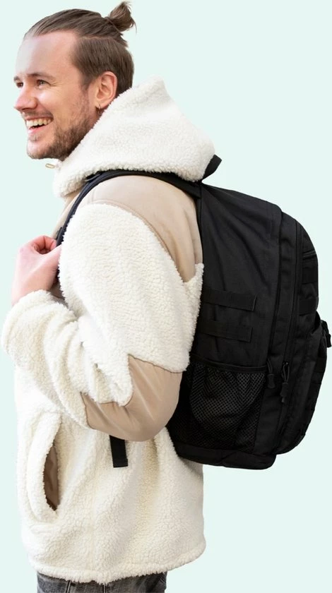 De Tactical Backpack is zeer geschikt voor op school, en voor op vakantie. Door het stijlvolle zwarte design kun je hem gewoon elke dag dragen.