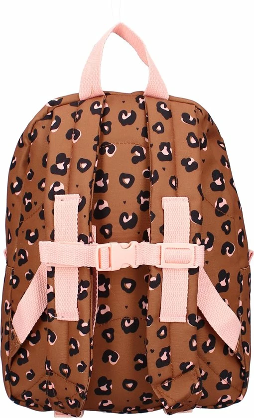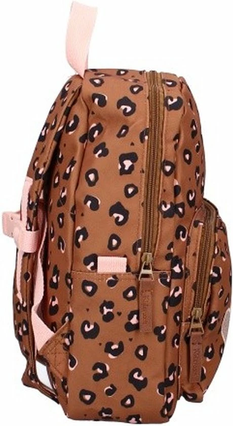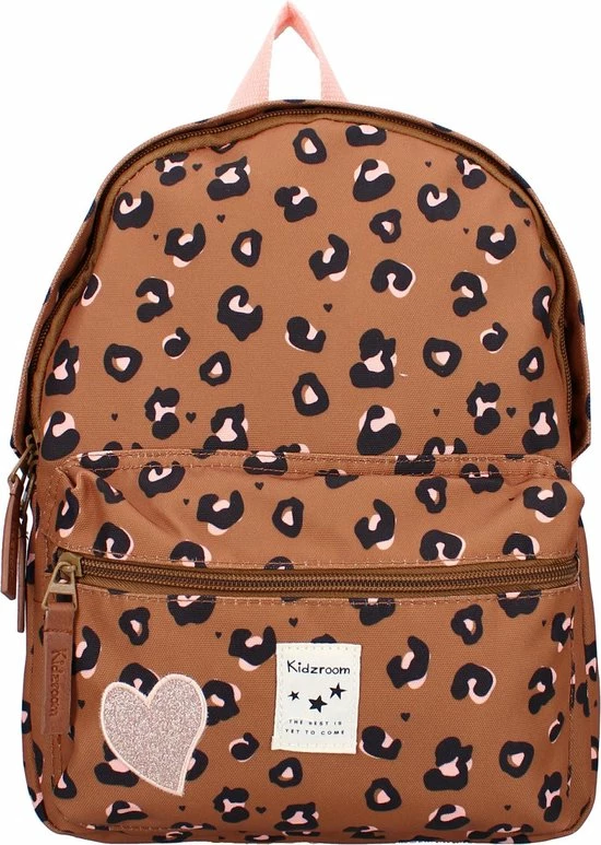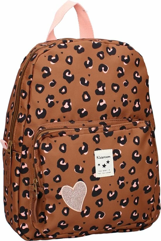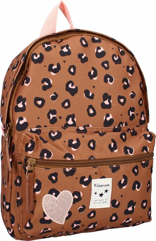 Super stylish voor de kleine fashionistas! Deze leuke bruine rugzak met vrolijke panterprint van Kidzroom neemt je kindje vast overal mee naartoe. Naar school, naar vriendjes of als je kindje gaat logeren bij opa en oma. De stevige rugzak van de Attitude collectie heeft een groot hoofdvak waar een lunchtrommeltje of logeerspulletjes makkelijk in passen. Het zilveren hartje op het ruime voorvak is een leuk detail dat je op alle tassen in Attitude-serie terug zien komen. De rugzak draagt comfortabel door de verstelbare schouderbanden. Aan de bovenkant van de tas zit ook nog een roze lus waaraan de tas is op te hangen of mee te nemen.