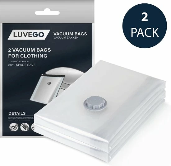 Of je nu ruimte wilt besparen in je koffer, meer plek wilt in je kledingkast of die enorme knuffels van je kinderen wilt opbergen, de vacuΓΌm opbergzakken van Luvego zijn dΓ© oplossing. Deze vacuΓΌm opbergzakken set bestaande uit 2 Jumbo vacuΓΌmzakken.