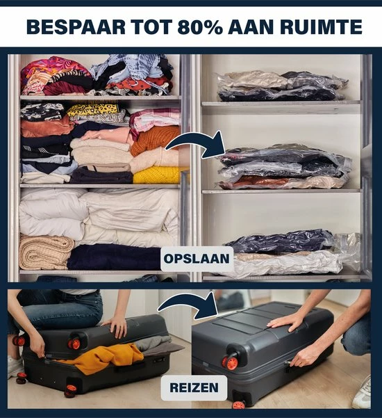 De vacuümzakken zijn vervaardigd van stevig plastic waardoor de opbergzakken helemaal vacuüm blijven. Verder zijn de de zakken vochtbestendig en dankzij het stevige plastic zijn scheurtjes in de zakken verleden tijd. De 20-delige vacuüm opbergzakken set wordt geleverd met een klein handpompje om zelf de vacuümzakken vacuüm te zuigen. Desalniettemin raden we aan een stofzuiger te gebruiken voor de grotere opbergzakken aangezien dit een stuk sneller gaat.