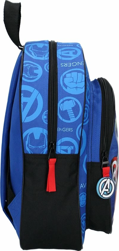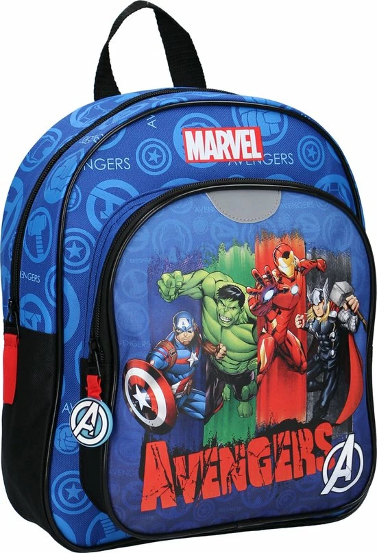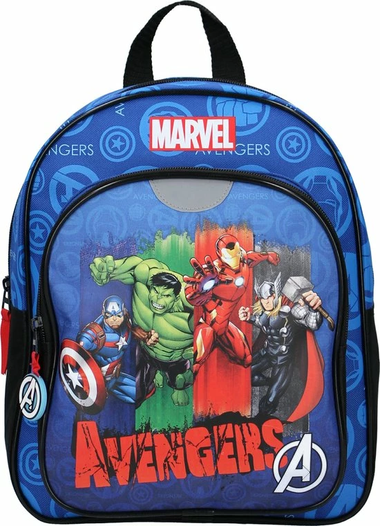 The Incredible Hulk, Captain America… Wat zijn deze vier superhelden uit Avengers een Amazing Team samen! Op de voorkant van deze Avengers rugzak zien we de superhelden in een team staan. Samen zorgen ze voor geweldige avonturen! De rugzak is uitgevoerd in blauw polyester. De tas heeft een ruim hoofdvak waar je schoolspulletjes, een lunchbox en een drinkbeker in kwijt kan. De schouderbanden zijn in lengte verstelbaar en met de lus hang je tas gemakkelijk op.