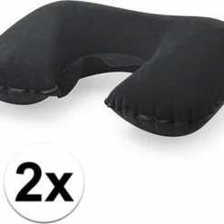 2x Opblaasbare nekkussens zwart voor bijvoorbeeld in de auto, trein of vliegtuig. Formaat nekkussentjes: 43 x 26,5 cm. U ontvangt 2 stuks.