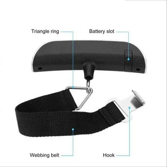 - Voor het wegen van bagagestukken, schooltassen en pakketten met verpakkingsbanden
