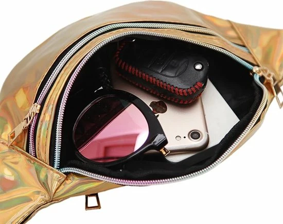 Of je nu een wandeling gaat maken of je gaat naar een festival, met deze leuke glanzende gouden heuptas heb jij al jouw belangrijke spullen altijd bij de hand! De tas heeft een ruim hoofdvak en voorvak waarin je, je telefoon, portemonnee, sleutels, Partydop of festivalbril gemakkelijk kunt bewaren. De band rondom je heup is verstelbaar, zodat je het tasje altijd perfect op maat kunt maken en met de ritssluiting sluit je de tas gemakkelijk af. Het tasje heeft een prachtige gouden glanzende laag, bijpassende ritsen en een zwarte band en is gemaakt van kunststof. Met de zon aan de hemel, een drankje in de hand, een goed gezelschap en zwaaiende handen is dit heuptasje het perfecte festivalaccessoire!