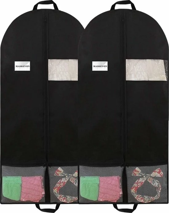Met deze Able & Borret kledingzakken bescherm je je kleding tegen motten, stof, damp en voorkomt nare geurtjes. De zakken zorgen er tevens voor dat je kleding kreukvrij blijft. Ideaal dus voor een maatpak of gelegenheidsjurk. Doordat de hoes transparant een transparante strook heeft, kun je goed zien welk kledingstuk erin zit en hoef je niet al je hoezen na te lopen voor het item wat je aan wilt doen. Onderaan vind je nog extra opbergruimte voor bijvoorbeeld bijpassende accessoires.