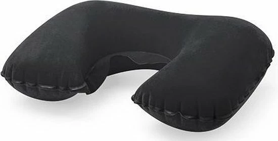 Opblaasbare nekkussen zwart voor bijvoorbeeld in de auto, trein of vliegtuig. Formaat nekkussentjes: 43 x 26,5 cm.