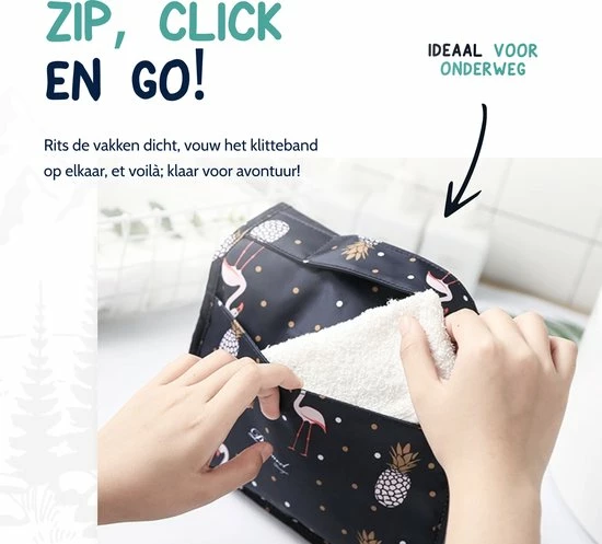 โ Zip, Click & Go! – Extra sterke ritsen houden al je spullen netjes op hun plek, zelfs bij veelvuldig gebruik. En ben je klaar om te gaan? Dan vouw je enkel nog de klitteband voering op elkaar. Letโs go!