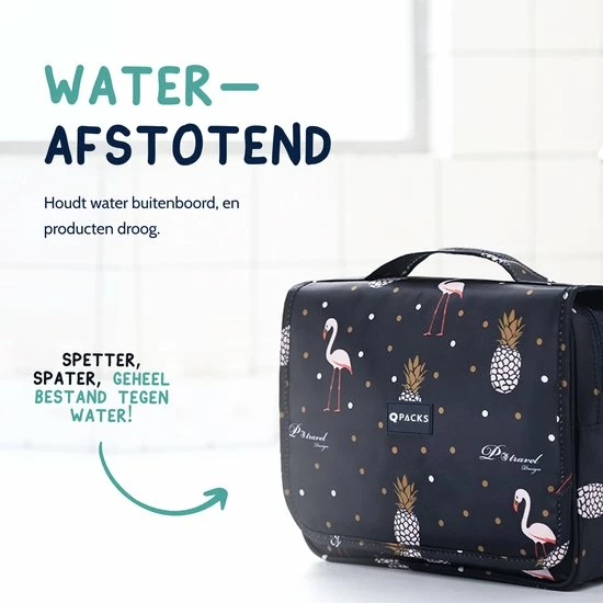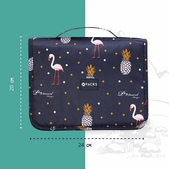 Met de Tropical Treasure Toilettas van Qpacks hou je altijd en overal al je verzorgingsproducten bij de hand. Verschillende opbergvakken laten je makkelijk sorteren, een waterafstotende coating houdt al je essentials droog, en dankzij het simpele zip, click & go systeem gaat de tas direct mee uit logeren!