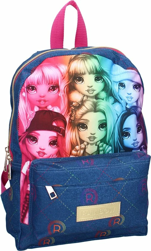 Nu is de tijd om jouw kleine meisje te voorzien van een tas met de populaire poppen van Rainbow High. De tas is gemaakt van stevig materiaal en is helemaal on trend. Het compacte design heeft alle gewenste details en is uitermate functioneel, wat perfect is voor jonge meiden. De tas is donkerblauw van kleur en de poppen zijn op de voorzijde bedrukt. De tas heeft verstelbare schouderbanden en is daarnaast ook eenvoudig aan de roze lus op te tillen. Het grote voorvak biedt ruimte voor alle benodigde kleine accessoires, zoals pennen, sleutels en oordopjes.
