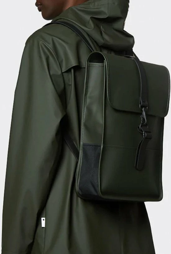 De Mini Rugzak is een kleinere versie van de originele Rains Rugzak. Deze minimalistische rugtas is gemaakt van een waterbestendige stof, waardoor jouw spullen altijd droog blijven. De rugzak beschikt over een laptopvak en een ruim hoofd compartiment waar je veel spullen in kwijt kunt. Daarnaast heeft deze tas aan de achterkant een verborgen ritszak, wat handig is voor bijvoorbeeld het opbergen van je telefoon.