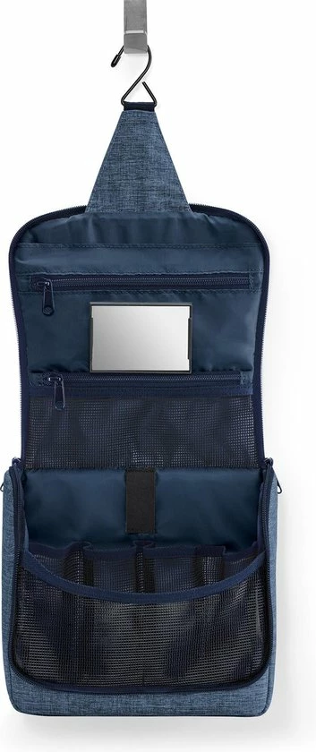 De klassieke reisenthel toiletbag kan gemakkelijk worden opgehangen in de badkamer. De opbergvakken zijn ideaal voor het opslaan van cosmetica en dergelijke. Hierdoor zijn al je toiletartikelen te allen tijde binnen handbereik. Deze toilettas heeft een ophanghaak, zodat je hem overal kwijt kan, en 1 groot hoofdvak met 4 extra opbergvakken. Daarnaast bezit hij 2 vakken met een ritssluiting en een uitneembaar spiegeltje.