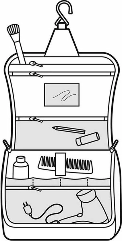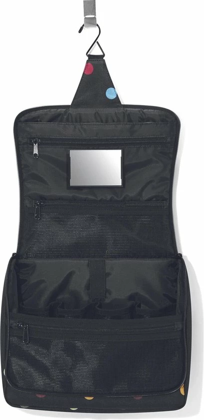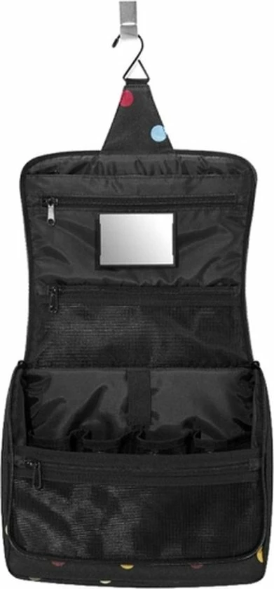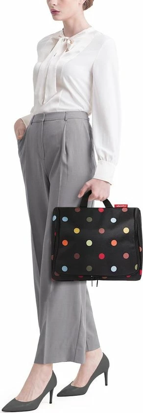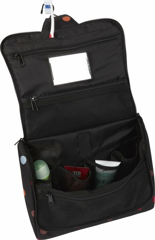 Kingsize bodycare: de toiletbag XL van reisenthel is groter en royaler dus veelzijdiger โ nu past zelfs je haarlak erin. De toiletbag XL kan gemakkelijk worden opgehangen in de badkamer en de opbergvakken zijn ideaal voor het opslaan van shampoo en dergelijke, waardoor het ten allen tijde binnen handbereik is. Deze toilettas heeft een ophanghaak zodat je hem overal kwijt kan, 1 groot hoofdvak met 4 extra opbergvakken. Daarnaast 2 vakken met een ritssluiting en een uitneembaar spiegeltje.