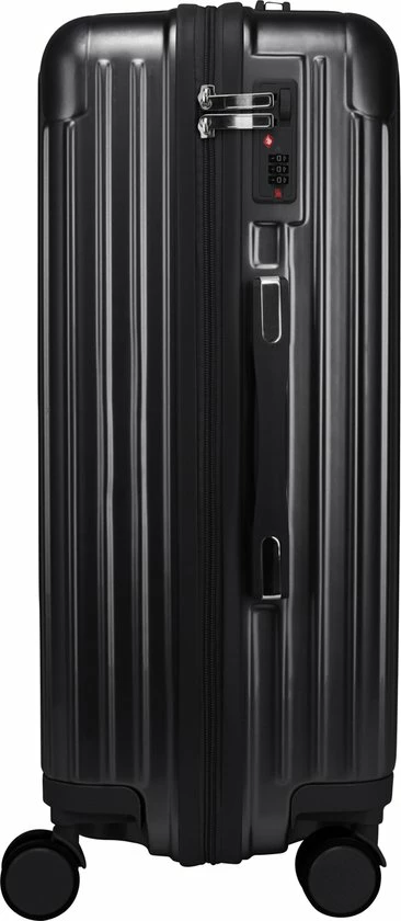 Deze betrouwbare koffer beschikt over al het nodigde voor u volgende vakantie. Een harde en veilige buitenkant, een aliminium trekstang, 3-cijferige slot, 4 dubbele flexibele wielen. De koffer is verkrijgbaar in 3 formaten. De middenmaat en grote maat zijn voorzien van stootrubbers, deze zorgen ervoor dat uw koffer tijdens transport zo min mogelijk beschadigd raakt. De stootrubbers bevinden zijn aan de lange zijde van de koffer. Zo beschikken de middenmaat en de grote maat ook voor een extra handvat. Deze zit onder het cijferslot. Doormiddel van deze extra handvat is het makkelijker om de zware koffer te verplaatsen of op te tillen in de auto, trein of bus. Binnen in de koffer is er een duidelijke en overzichtelijke verdeling. Aan de ene zijde een divider met 2 gekruiste spanbanden en aan de andere zijde een handige ritsvak. Dit maakt deze koffer van het merk Royal Swiss een betrouwbare reispartner met een fraaie design.