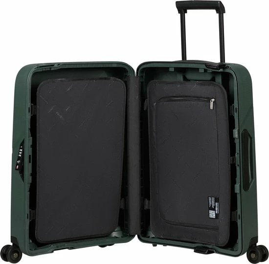 - Binnenstof gemaakt van 100% gerecycleerde petflessen. Praktisch interieur met twee in de hoogte verstelbare tussenschotten, waarvan één met een ritsvak.