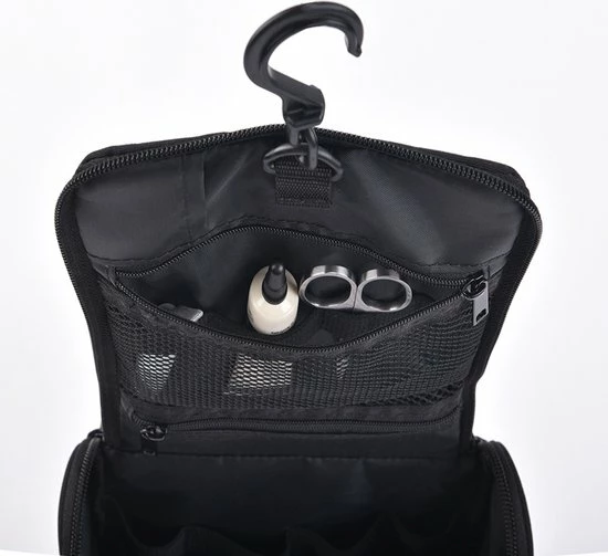 Deze handige toilettas is perfect voor al uw vakanties en reizen. Hij is compact en van hoge kwaliteit nylon, waardoor hij gemakkelijk mee te nemen is en lang meegaat. Daarnaast is de tas volledig waterdicht. De toilettas heeft verschillende handige opbergvakjes en een groot algemeen vak voor al uw toiletspullen. Met de ophanghaak kunt u de tas overal aan bevestigen, bijvoorbeeld op een praktische plek in de badkamer of uw tent. Ideaal voor op reis dus!
