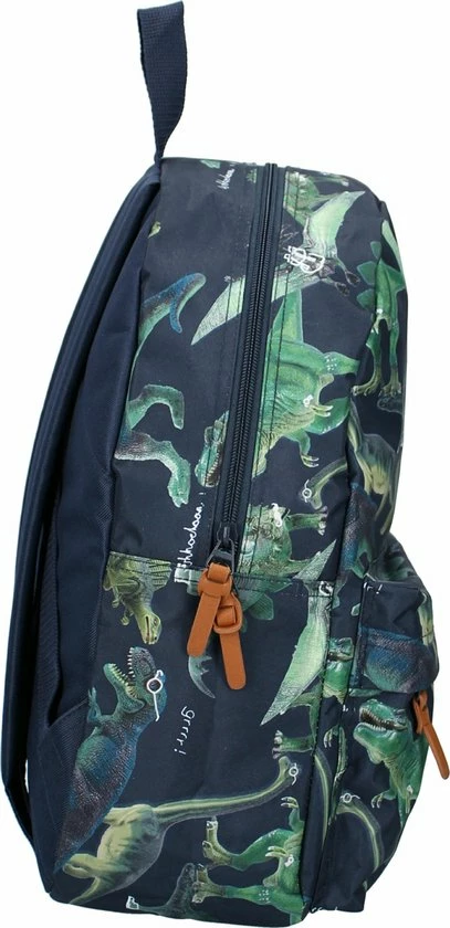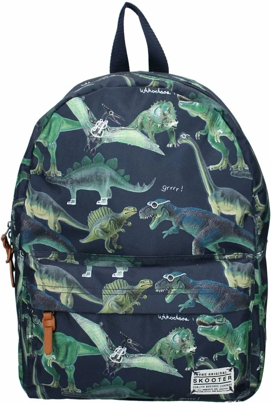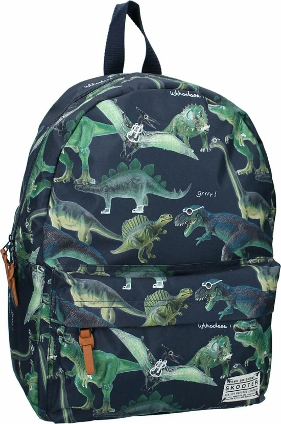 Dinosaurussen uitgestorven? Deze rugzak van Skooter doet anders vermoeden. Op de blauwe rugtas zien we in het groen verschillende coole dinosaurussen afgebeeld. Het voorvak van de rugzak is zeer ruim te noemen en ook in het hoofdvak is genoeg ruimte om veel spullen in mee te nemen. Handig voor mee naar school, tijdens een schoolreisje of een nachtje logeren. De rugtas is van 100% polyester; een vormvast, kreukvrij en duurzaam materiaal dat zijn kleur goed behoud.