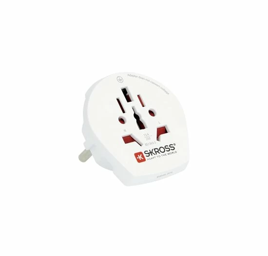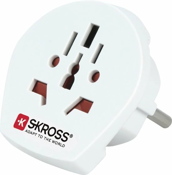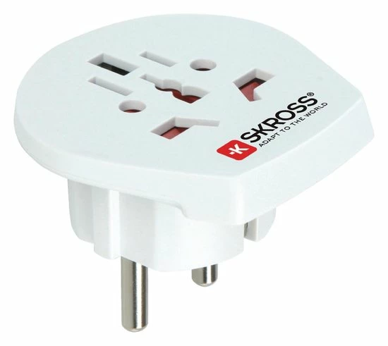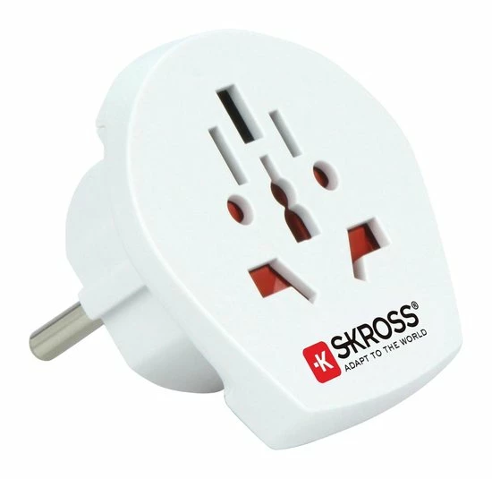 Deze geaarde reisadapter van het merk Skross zorgt ervoor dat je je al je buitenlandse apparaten kunt opladen in Europese landen. Apparaten uit de landen Australie, Verenigd Koninkrijk, Italie, China, Zwitzerland en Amerika kunnen worden gebruikt voor deze reisstekker.