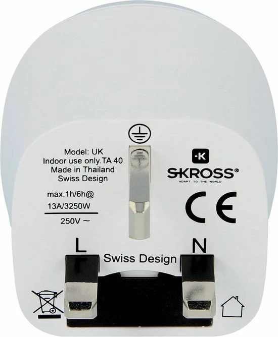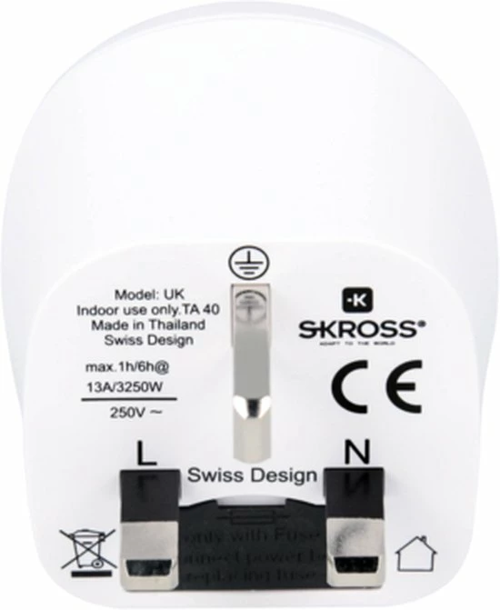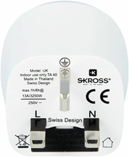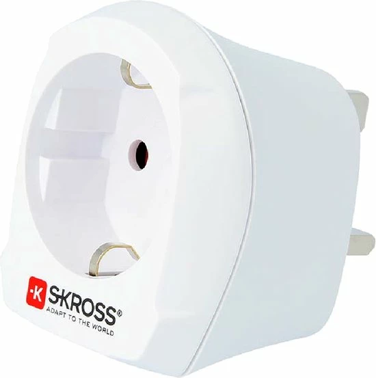 De Country Adapters van SKROSS zijn de ideale oplossing voor reizigers die naar 1 specifiek land gaan en hier een reis adapter voor nodig hebben. Met de Europa naar UK wereldstekker kunnen alle Europese apparaten die zijn uitgerust met 3-polige Europe (Schuko) of 2 polige Euro stekker in Engeland van stroom worden voorzien. Zelfs geschikt voor stroomvreters zoals de laptop en föhn! Ontworpen en vervaardigd in Zwitserland.