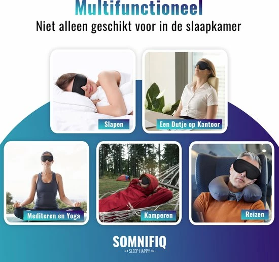 Dit masker is ook geschikt voor tijdens het mediteren, yoga of voor tijdens een massage bijvoorbeeld. Het Somnifiq masker komt met reistasje en kan dus overal gemakkelijk mee naartoe. Of je nu een dutje doet onderweg in de trein of een lange vlucht voor de boeg hebt. Altijd een comfortabel slaapmasker bij de hand en inclusief oordopjes!