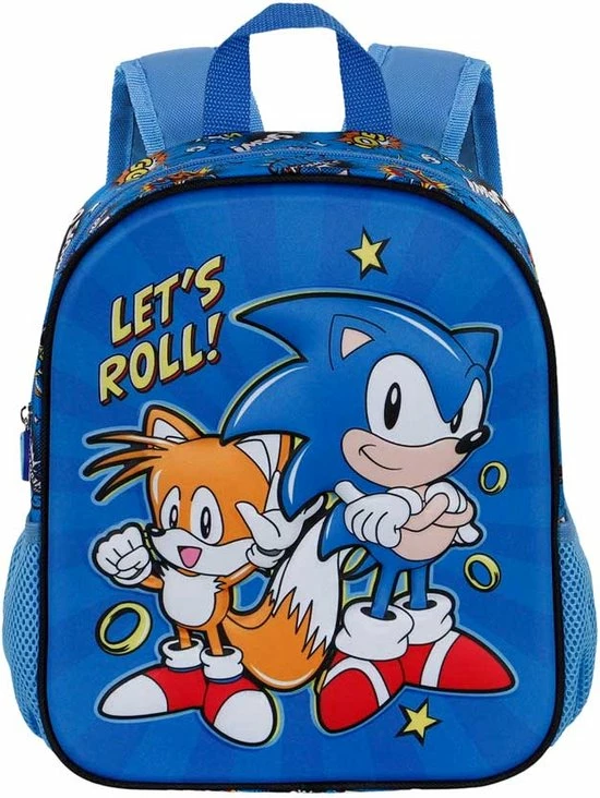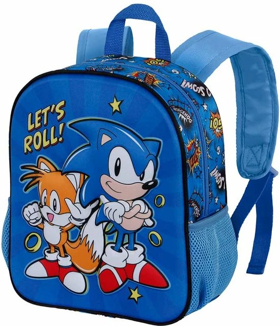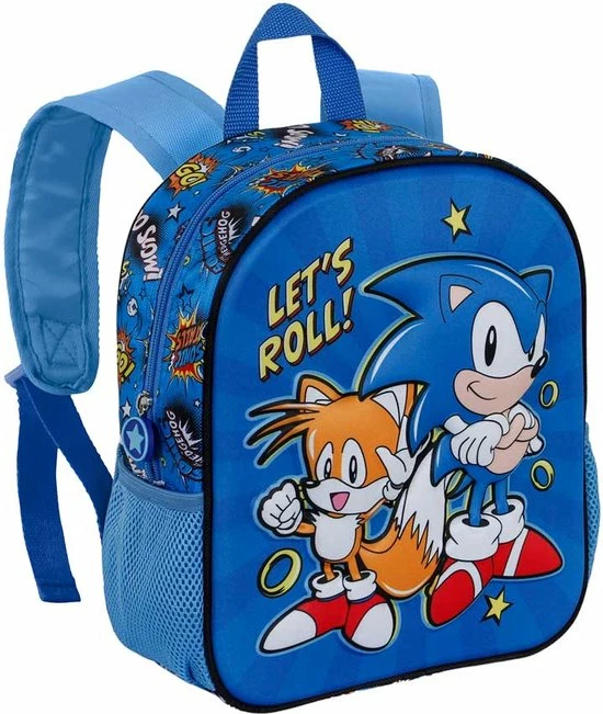 Op de rugzak vind je Sonic samen met zijn vertrouwde maatje tails.
