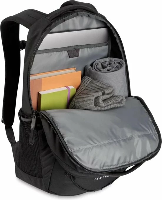 - Vakken: twee grote vakken, twee mesh zijvakjes/ elastisch trekkoord voor losse spullen op de voorzijde. Het achterste grote vak beschikt over een laptopvak. Het voorste grote vak beschikt over verschillende organiser vakjes voor bijvoorbeeld pennen en een tablet.