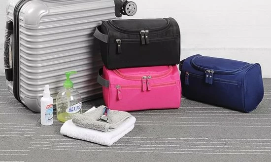 De toilettas is voorzien van een stevig handgreep. Waaraan je de toilettas kunt dragen of aan kunt ophangen.