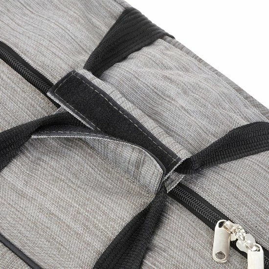 De reistas weegt slechts 800 gram , heeft een inhoud van 36 liter, en naast een handvat ook een draagriem voor de schouders