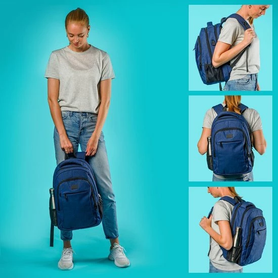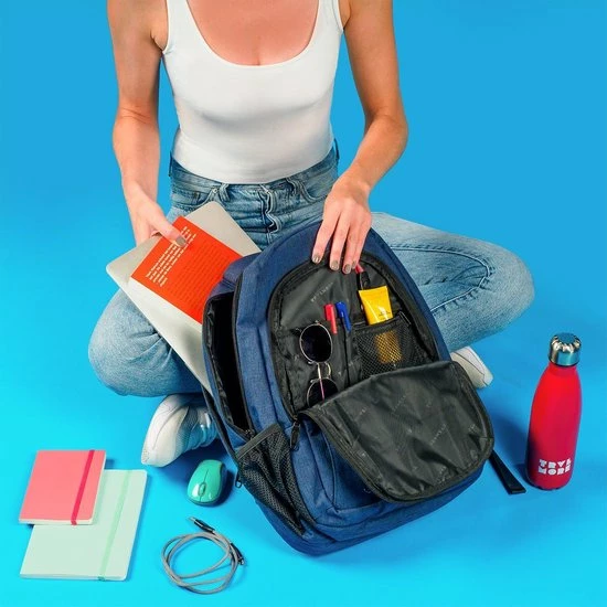 De vijf verschillende compartimenten bieden ruimte voor alles wat je nodig hebt! Het ruime hoofdcompartiment bevat een gevoerd 15,6โ laptopvak en een tabletvak. Ook kun je jouw mappen en notitieboekjes gemakkelijk kwijt. Naast een easy-access vak aan de voorkant en twee extra vakken is er ruimte voor een waterfles (of paraplu) aan beide zijkanten.