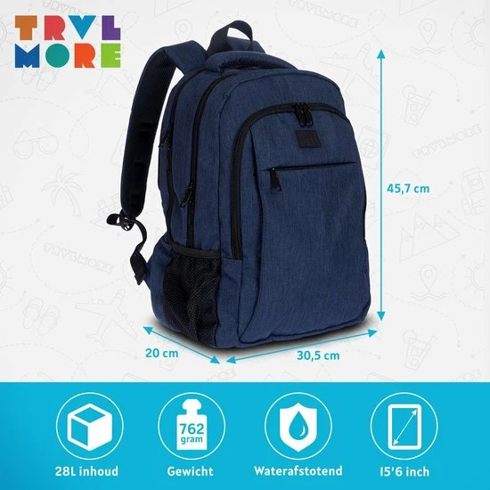 Wil jij een comfortabele rugzak met veel handige compartimenten en een 15,6โ laptopvak? Dan is de TRVLMORE Rugzak (28L) de tas die je zoekt! Met een spatwaterdichte coating, USB-poort, stevige vergrendelbare ritsen, en een 15.6โ laptopvak heeft deze tas alle features die je nodig hebt. De gewatteerde schouderbanden geven optimaal comfort en zijn makkelijk verstelbaar. Deze stijlvolle backpack is ideaal voor dagelijks gebruik en voor op reis!
