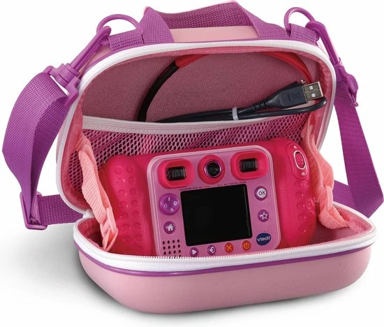 Bescherm je VTech KidiZoom in je eigen draagtas! Met opbergvakken voor de koptelefoon en batterijen in de kleur roze.