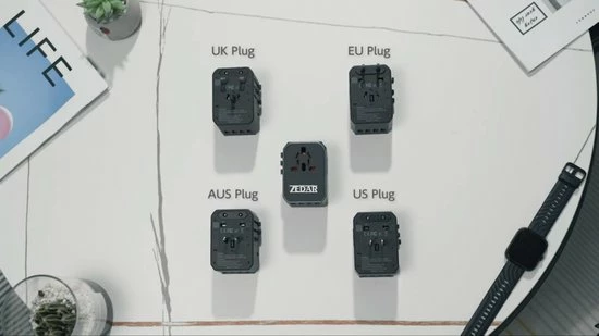 Op vakantie mooie fotoโs delen op jouw socials om er vervolgens achter te komen dat je geen juiste stekker hebt om jouw smartphone op te laden. Dat probleem is opgelost met de wereldstekker van Zedar. De reisstekker wordt geleverd met verschillende opzetstukken, waardoor je jouw telefoon, camera, fรถhn of ander apparaat, in maar liefst 150 landen kunt opladen. Dankzij de meerdere USB en USB-C poorten kan je tot 5 apparaten tegelijk opladen.