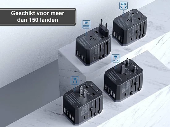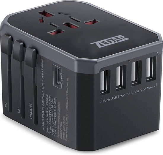 De reisstekker van Zedar is ontworpen om jouw ideale reismaatje te worden. Dankzij het lichte gewicht van 150 gram en compacte model, berg je hem gemakkelijk op in je bagage. De wereldstekker heeft een upgrade gehad waardoor je het in maar liefst 150 landen kunt gebruiken. Daarnaast beschikt de reisstekker over 4 USB en 1 USB-C aansluiting, hiermee is het een echte multitasker en laadt je naast jouw smartphone ook de tablet of ander andere apparaten op.