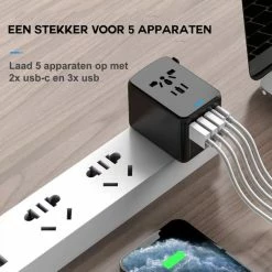 Kopen ๐ Dutch Quality® – Universele Wereldstekker Met 2 USB Poorten – 170+ Landen – Zwart ๐งจ