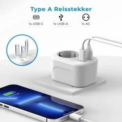 Korting ๐ Voomy Reisstekker Engeland/UK – Wereldstekker Type G – USB-C & USB-A – Wit ๐